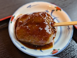 新鹿沼駅前にあるお蕎麦屋さん「みっちゃん蕎麦」に今回お邪魔しました。店内はすでにお客さんで賑わっている状態。まだ、開店10分ですよぉ~。奥のテーブル席に通されてメニューを拝見。【芭蕉そば御膳】のAセットと鹿沼といえば「ニラ」と「焼売」という事で、一品料理の【鹿沼ニラそばシウマイ】も一緒に注文。そばにかき揚げ、そば餅、味噌おでんが付くボリュームのあるセットで、そばを料金プラスでにらそばにも変更できます。細めの蕎麦は、のど越しよくてあっという間に平らげてしまいました。焼売はニラの茎が入っていて、シャキシャキした食感も楽しめて美味しかったです。 (訪問:2025/07/18)