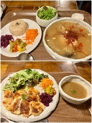 NEW夕方から夜へと移り変わる頃に伺いました。窓に映るなんとも云えない美しいブルーを眺めながら身体に優しい夕食をいただきました。サムゲタンとジャガイモのグラタンのようなプレートをチョイス!アイスティーとアイスロイヤルミルクティーに新登場の抹茶ケーキ(取り置き)とチーズケーキは、テイクアウトしました。オニオンスープもジャガイモのグラタンも優しい味のサムゲタンもとっても美味しかったです♪連日行きたいくらい❣️身体に優しく沁み渡るんです!食材の素材そのものもいいんだと思います(^^) (訪問:2026/02/27)
