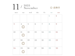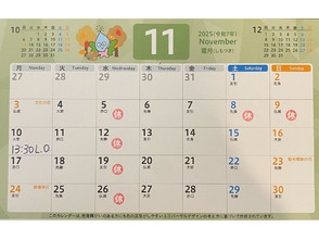 - 秋限定ニュース *11月の営業カレンダー* (2025/11/01)