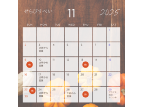 - お知らせ 11月の営業予定とおススメメニュー心と体のトータルヒーリングをしませんか? (2025/11/04) UP