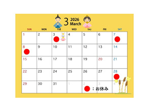 - お知らせ 3月のお休みカレンダー (2026/02/24) UP