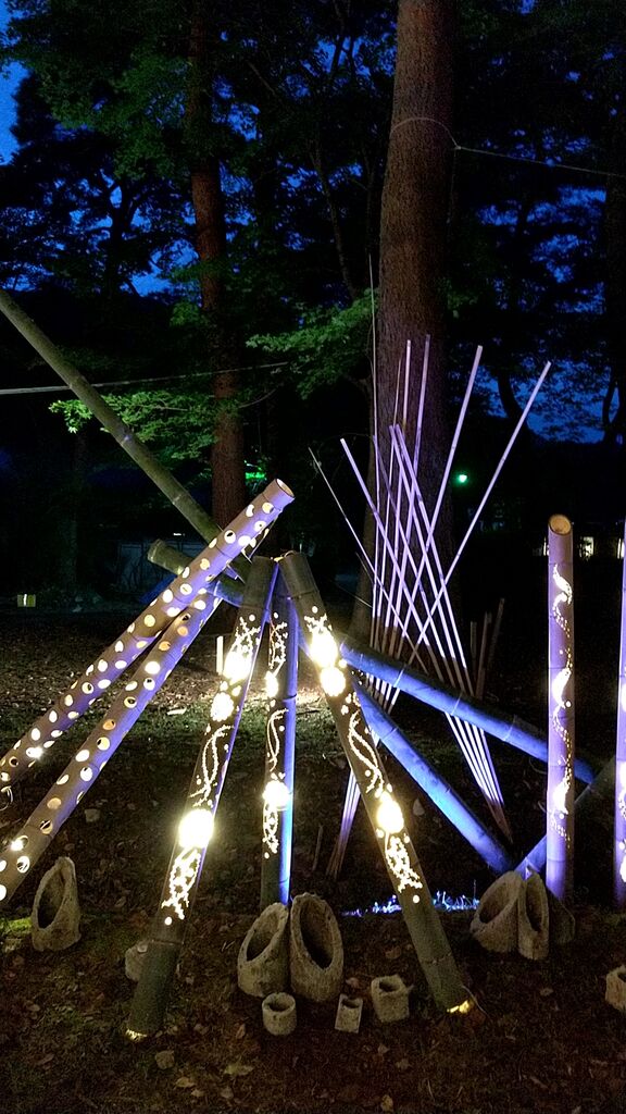 鬼怒川公園(特設会場)で行われている、月あかり花回廊に行ってきました。和傘、草木、竹で飾られた森。日が暮れる前のモダンな感じと、暗くなってからの幻想的な雰囲気。どちらもとってもよかったです。この日はオカリナ・フルート奏者の方のコンサートもあり、素敵な音色に癒されました♪ (参加:2022/10/04)