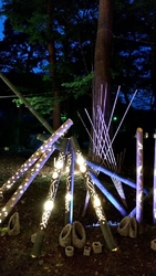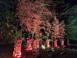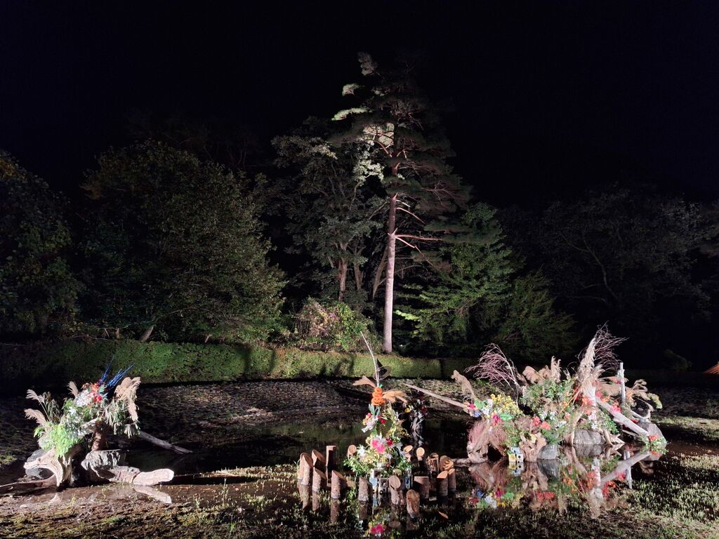 今年も伺いました。小雨のためか客足は少なめでしたが、その分拝見しやすくワクワク。基本は去年と大きく変わり無しですが、所々変わっていて、今年はこうきたか~って楽しみながら拝見させていただきました。会場には数人のスタッフさんもおり、お写真撮りますよ~^^とお声がけしてくれる様子も。18時過ぎに到着し、ライトアップを拝見して奥のステージや物販等あるエリアに移動すると、ちょうど二胡の演奏がスタート。ベンチとテントがあり座って拝聴させていただきましたが、この素敵な雰囲気に良く合う♪またこの日は打上花火も予定されており、雨だけど?と思っておりましたが、予定どおり20時半にスタート!雨が降り、霧も出ていたため、鮮やかな光は拡散してましたが、目の前で上がる体に響く花火の音と、夜空に咲く大輪の花を満喫☆暑さと混雑が苦手な私には嬉しい真逆の花火を楽しめて大満足。月あかり花回廊のタイトル、当日は月あかりは見られませんでしたが、それを補ってあまりある素敵な空間に、心踊る時間を過ごさせていただきました。今年は友人と行きましたが、友人もとても喜んでくれ、昔日光に住んでいたのに知らなかったと。もっと多くの方に知っていただき、素敵な空間を共有できたらいいなぁ。花火は29日の最終日も上がるようですよ。 (参加:2024/09/21)
