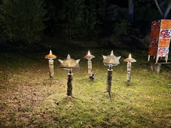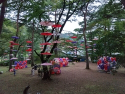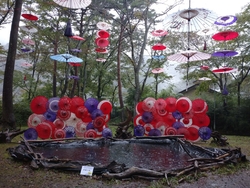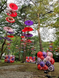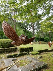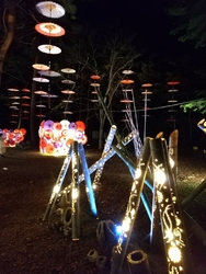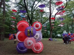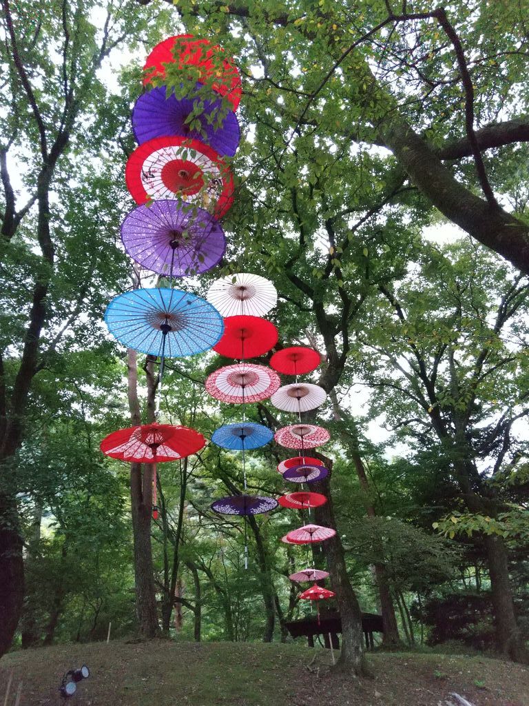 今年も、月あかり花回廊が始まるのを楽しみにしていました。イベントの初日、両親を連れて行こうと計画していましたが、夜は雨予報なので、昼に行ってきました。夜のライトアップも素敵ですが、森に和傘が飾られた昼の雰囲気も いい感じ(*^.^*)♪ 和傘のほかにも竹細工や、生け花、チェンソーアートのフクロウさんなど、いろいろ飾られていて楽しかったです。 (参加:2023/09/22)