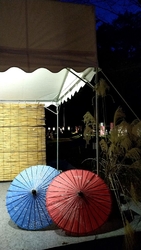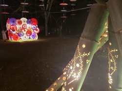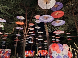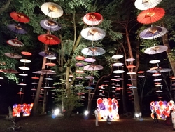 一度行ってみたいと思っていたので行ってみました。小学校の校庭が臨時駐車場になっていて、18時前に着いてしまいましたが停められました。ライトアップは18時半からとなっていましたが、既にライトアップはされていたので会場へ。色とりどりの和傘や竹が飾られていて、幻想的な雰囲気が良かったです。 (参加:2023/10/05)