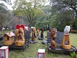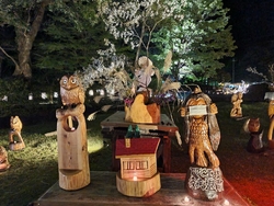 今年もまむたんさんの口コミを見てこちらの開催を知り、近々行こうと思いつつ…。ようやくお邪魔しました。19時半頃の到着で見ているかたはまばら。だいぶ気温も落ちていたのと、雨予報だからでしょうか。お陰で人を気にせずたっぷり堪能できラッキー!!毎年恒例の行灯型のライトには様々な方の絵が描かれており、一つ一つ見るのは本当に楽しい♪そこを抜けるとたくさんのフクロウさんの彫刻ゾーンに、キャンドルがたくさん。キュートなフクロウさんから、かっこいいフクロウさんまで様々で賑やかです。途中燃え尽きてしまった蝋燭を交換して回る少年に遭遇。一つ一つ丁寧に確認して、私たちが楽しめるように、安全に歩けるようにと作業されてる姿に心打たれました。そんななかメインの和傘のライトアップを拝見したので、例年以上にこのライトアップの素晴らしさと鬼怒川の皆さんの暖かいおもてなしの心に感動☆こんなに素晴らしいものに毎年出会えることに感謝でした!!鏡池に和傘や三日月の形をしたモチーフが反転して水面に写る姿が綺麗^^和傘を楽しんでいると、お琴の音色が。綺麗なお姉さんが玄を爪弾いて演奏する音色が、このライトアップにピッタリで、うっとり。会津とコラボということもあり、荒城の月の演奏や、もののけ姫などピッタリドハマりな演奏。タイミングよく来られてラッキー!帰りには会津の名産品などが販売、最近ハマっているあかべこさんのコインケースをゲット。可愛すぎて何をいれて持ち歩こうかワクワクです。こちらの公園でのライトアップは9日までだったようで、現地についてそれを知り、本当にタイミングが良かったなぁとひと安心。撮った写真を栃木県内外のお友だちに送信したら、なんで教えてくれなかったの?行きたかった!!と皆から責められました。ぽぽ♪さんの昼間の投稿も拝見し、昼間も見たくなりました。来年の開催も楽しみです。 (参加:2023/10/08)