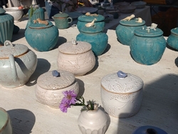 ウキウキ益子秋の陶器市……私はまだまだ初心者3回目の陶器市です。けれども、こなれてきた感じ!まずはお目当て「よしざわ窯」さんの入場整理券を受け取けました。それから「わかさま陶芸」さんへ。そして「OCTOPA食堂」さんでは小豆サンドチーズケーキ9:30のおやつタイムにいただきました。「cafe mikumari」さんのチョコチップスコーン&パウンドケーキはお土産にね。移動本屋「ペンギン文庫」さん。そぞろ歩きをしながら12:00頃には「炉庵」で新蕎麦のランチいただけました。香りが豊かですね!入場整理券302番、よしざわテント 13:00に入店です。今回はシンプルな色合いを選んでみました。冬の温かなお料理を盛り付けるのが楽しみです。秋の益子の賑やかな町。新たな発見や出会いが楽しく身も心も軽やかに、14,000歩で巡ってきました。 (参加:2023/11/03)