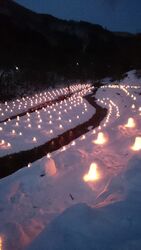 数年前に伺った時の感動が忘れられず、数年ぶりににこちらにお邪魔しました。5時半の点灯を前に、地元の人達の手で河川敷のミニかまくらにひとつひとつ蝋燭の灯りが灯され、なんとも言えない幻想的な風景を創り出していました。かなり冷え込んでいるのですが、そのために空気がさらに澄んでいて、ゆらゆら揺れる優しい蝋燭の灯りの儚さにしばし時間を忘れて眺めていました。何でもLEDになってしまっているこのご時世だからこそ、余計に蝋燭の灯りが貴重なものに思えたのかもしれません。一度見たら忘れられない思い出になると思います。なかなか伺えませんが、是非また伺いたいですね。 (参加:2019/01/29)