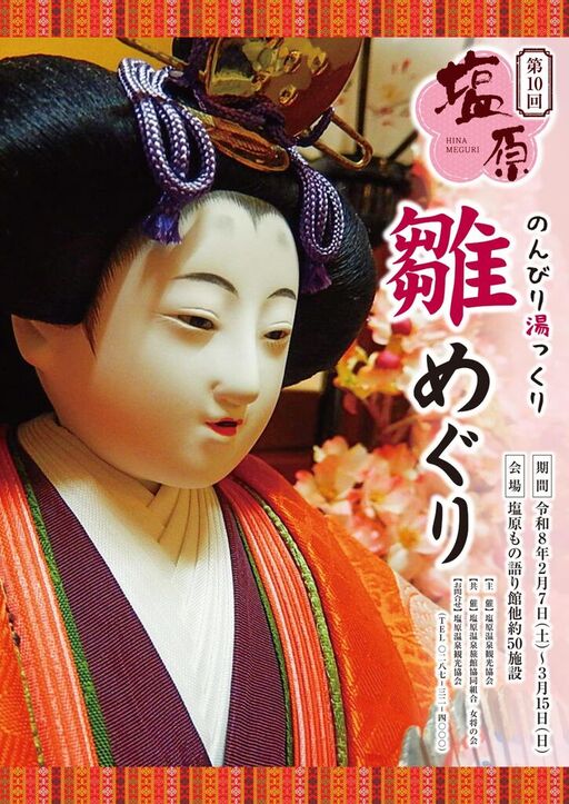さらにお雛様が飾りつけされた施設を10箇所めぐりスタンプを集めると、宿泊券が当たるガラポン抽選に参加、もしくは素敵な和雑貨や温泉むすめ塩原八弥(やや)ちゃんの缶バッジがもらえます!