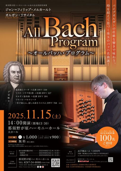 参加有料 1,000円(会館友の会会員900円) 小・中学生無料(要入場券) ※小学生以上の入場となります。 |