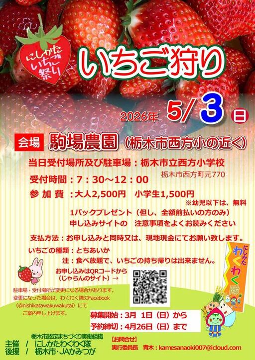 例年恒例イベントでいちご狩りを5月3日(日)に開催いたします!