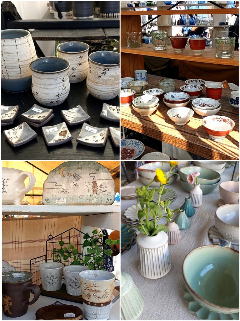 販売店約50店舗の他約700のテントが立ち並び、伝統的な益子焼から、カップや皿などの日用品、美術品まで販売されます。