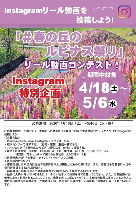 ◆春の丘のルピナス祭り2026 リール動画コンテスト緊急開催!