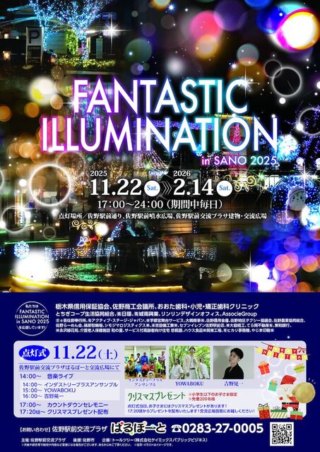 クチコミ9件 佐野市のイルミネーション [開催中]FANTASTIC ILLUMINATION in SANO 2025 2025年11月22日(土)~2026年02月14日(土) お気に入り クチコミするキャンペーン中 基本情報 クチコミ 地図 ニュース 【ニュース】FANTASTIC ILLUMINATION in SANO 2025(2025/11/18) FANTASTIC ILLUMINATION in SANO 2025の詳細ページです! マイニュースに追加 ニュース&レポートMENU FANTASTIC ILLUMINATION in SANO 2025(2025/11/18)