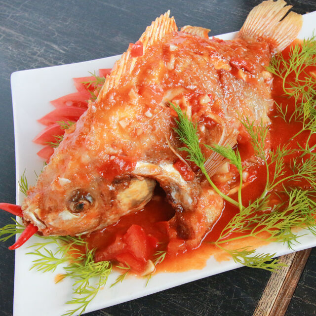 レッドティラピアのまるごとフライ トマトソースがけ…1,980円(あんかけあり)/1,780円(あんかけなし)※数量限定 ※無くなり次第終了 ※なるべくご予約ください。