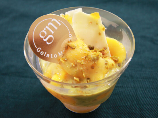 Gelato Masumoさんの、今回特別に作ってくれたオリジナルジェラート!甘酸っぱいオレンジとパッションフルーツに、濃厚なピスタチオクリームがマッチ♪