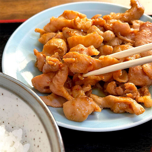 ピリ辛いのオリジナルのタレが食欲誘う、ぷりっぷりホルモンで白米とまりません!