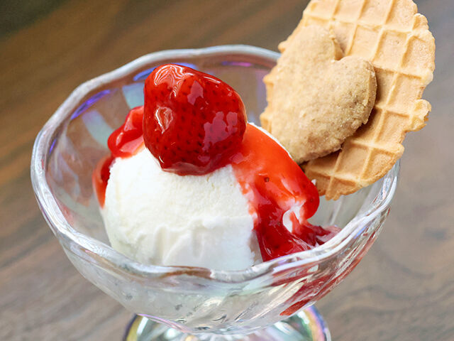 ドライカレー・サラダ・ドリンク(コーヒーor紅茶orオレンジジュース)・アイスクリーム(バニラorいちごソース添えorアフォガード)