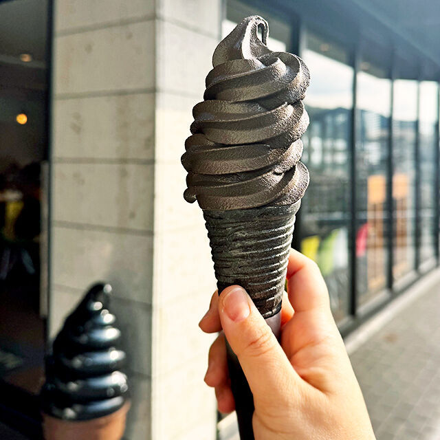 鬼黒ソフトクリーム、バクバク食べたら鬼みたいな口になっちゃうよ!
