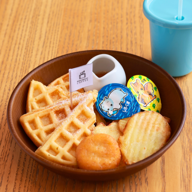 たまごサンド(ハーフ)・米粉のワッフル・ポテト・ソフトクリーム・ドリンク