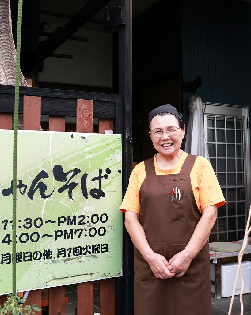 自慢の名物になった、家庭で親しまれてきたにらそば。上質なそばの産地である地元そばの実を、お店で製粉しそば打ちしています。芳醇な香りとのどごしの良さを、最大限味わえる絶妙な太さも特徴です。一緒に味わう茹でたニラの、甘くてキュッキュッっと歯ざわりの良い食感は嬉しい驚き!自家製つゆがさらに味を引き立て、するすると気持ちよく食べ進みます。
