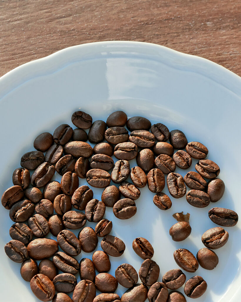 今宮神社参道そばの、和のぬくもり感じる古民家ロースタリー。甘さと後味のきれいさにこだわって焙煎した世界各地の豆の中から、今回はベトナムのトイさんが育てた良質なロブスタを深煎りで。苦みがありながら香ばしさとまろやかさが際立ち、ミルクやスイーツともなじむ心地よい味わい。鹿沼組子デザインのコースターや和のカップとともに、ほっと落ち着くひとときに。