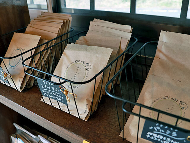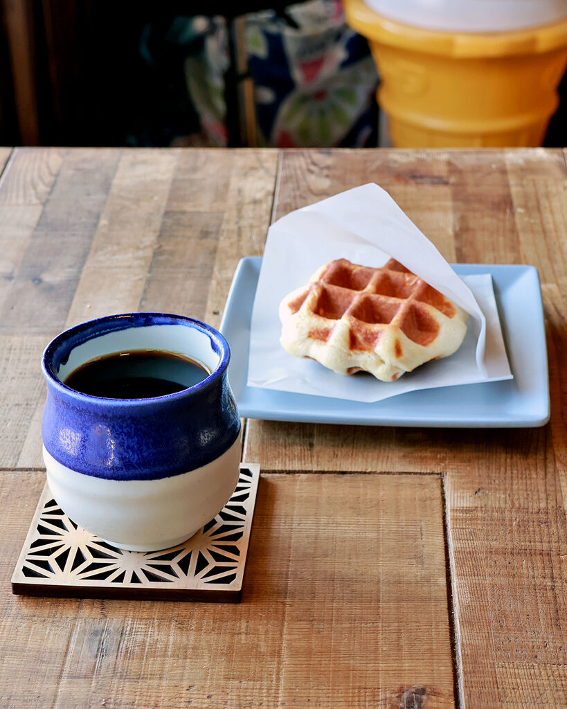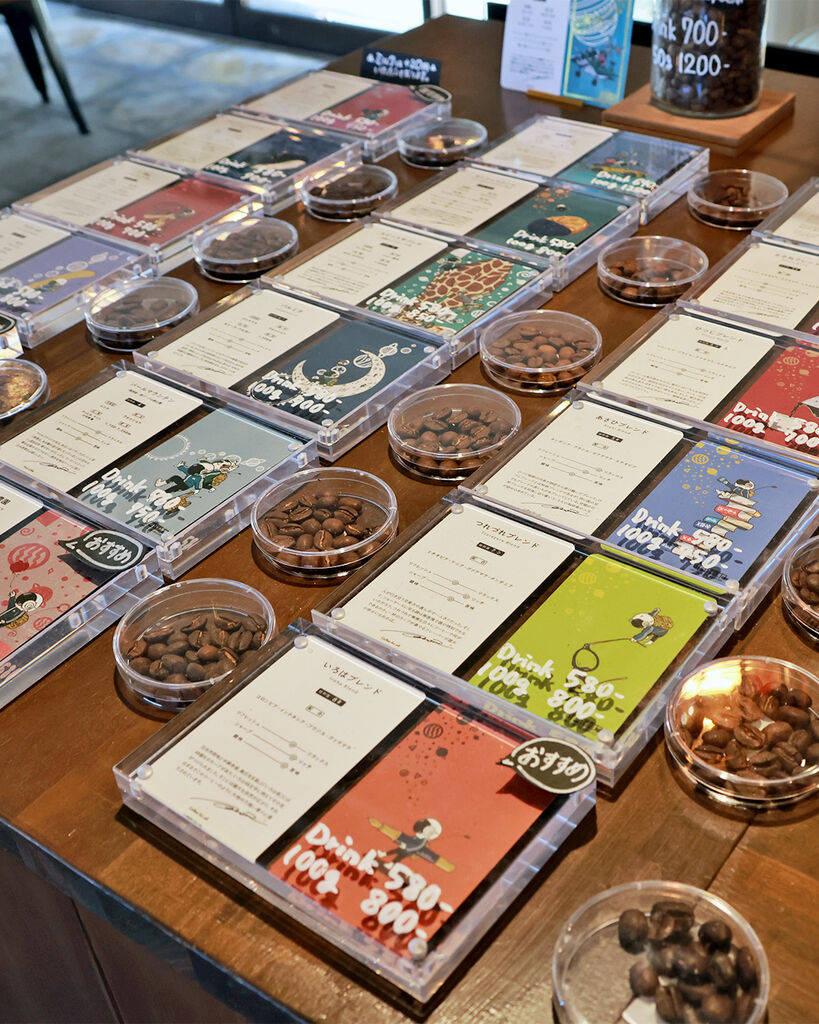 築70年の米蔵を改装した、深煎り好きの店主が営むコーヒー店。一粒ずつ豆を選別するハンドピックを2回行うことで雑味をそぎ落とした「月と.ブレンド」は、しっかりとしたコクと苦みの中にすっと抜ける軽やかさが共存する、深煎りのイメージが変わる一杯。店内には深煎りを中心に3〜5種類の豆が並び、イートインもOK。古物や石鹸が寄り添う幻想的な明かりの下で、深煎りの奥行きとやさしさを感じて。