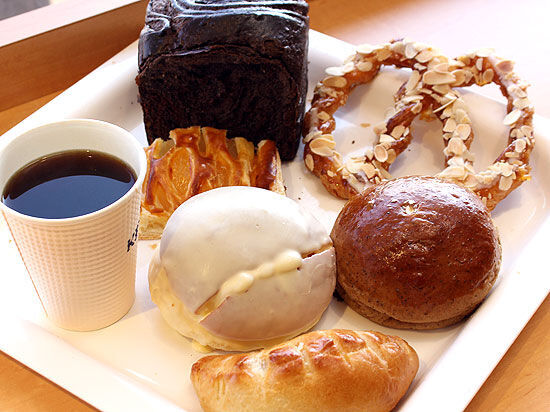 宇都宮ぎょうざパン 210円(左)・プレッツェル 210円(中)・ブラックショコラブレッド 462円(右)