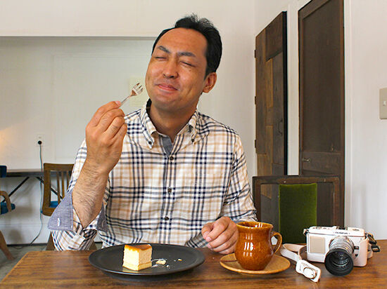 夕方の優しい光が店内に差し込み、味のある古家具が落ち着いた空間にしています。撮影の疲れを癒しながら今日撮影した写真の出来を見てみます♪ハンドドリップしたちょっとビターなコーヒーとしっとりチーズケーキをいただきます。味のあるテーブルや椅子、やさしい照明などに囲まれ落ち着いた店内でついついのんびりしてしまいました~。