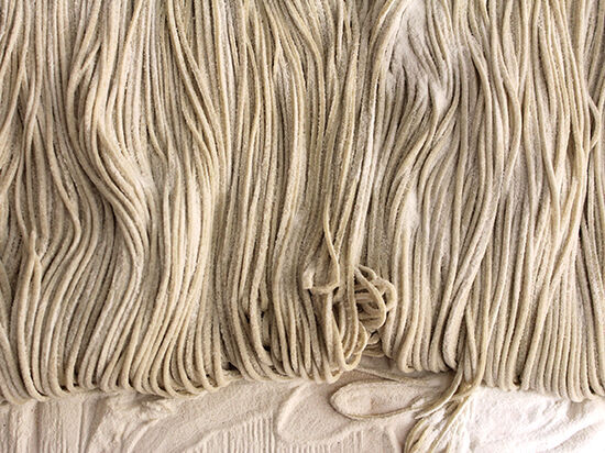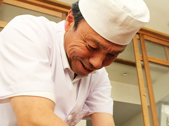 見てください!廣木さんが切ったこの正確な太さ。機械ではなく、包丁1本で切っていくんです。簡単には真似できません…。これぞまさにプロの仕事です。