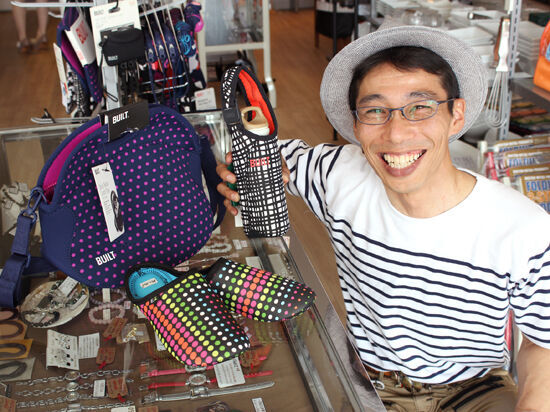 カラフルなドット柄は、男性にも人気だとか!ウエットスーツ素材なので、丈夫な上、水にぬれてもすぐ乾くそうです。ランチバッグ、スリッパ、ボトルホルダーなどアイテム多数で、迷っちゃうな~!
