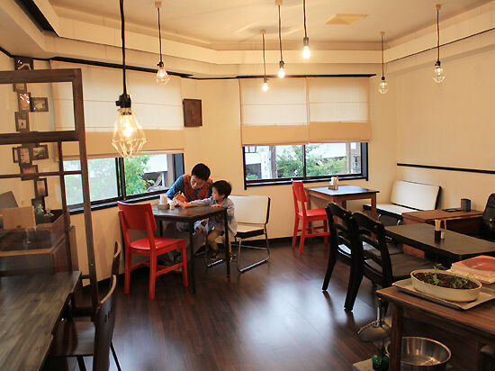 鬼怒川温泉駅から程近い場所に、おいしい手作り料理が食べられるカフェ「aNgle cafe(アングルカフェ)」があります。建物の裏手にある駐車場に車を止めて、通り沿いの幅の広い階段を上ると重厚な木のドアが。そっ~と開けてみると、ナチュラル&モダンな店内が広がります♪内装は店主自らの手作りで、塗りあとが見える素朴な壁や電球がいい雰囲気~☆お料理も手作りソースやタレなどを使ってこだわりのメニューが目白押し!