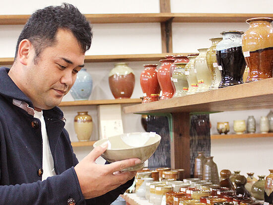 絵柄やくすりの付き方でその表情もさまざま。二つと同じものがない陶器は、いろんな角度からじっくり選びたいですね!僕の手は大きいので、手に取ったときの馴染み具合もチェックしちゃいます☆