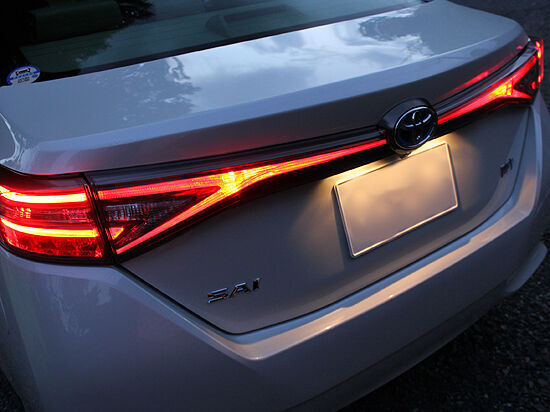 ライン状に輝くワイドなランプは新型「SAI」のしるし!