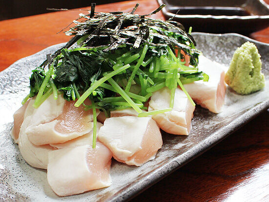 こちらの鶏肉料理専門店でTOP3に入るこちらの一皿。ボイルした鶏肉はシンプルにわさび醤油でいただきます。丁寧に調理された美しい桜色の身の、レアだからこそ味わえるしっとりした肉質は感動ものです!