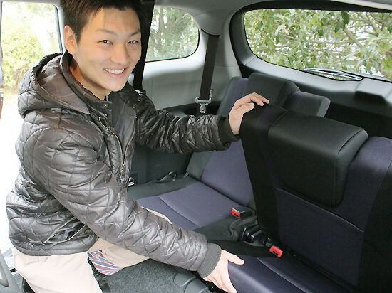 「WISH」のシートは、スライドし放題!セカンドシートは、前へ後ろへスライドし、サードシートは左右独立してリクライニングが可能です。大きな荷物を載せたい時は、すべてのシートを倒せば、フラット空間が出現☆