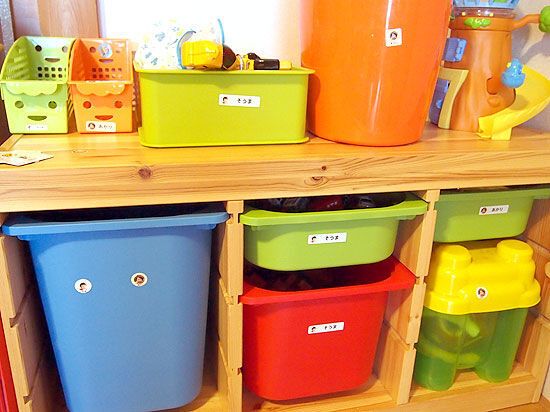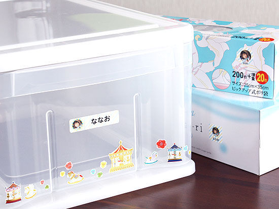 「2人とも自分の顔写真が入っているのがとても嬉しかったみたいで、率先して自分のものにペタペタ。お兄ちゃんは、保育園で友達に自慢するんだと得意顔。共有だったおもちゃ箱をシールで分別したところ、自分の物は自分で片付ける習慣が付き、ママも大喜びしています」