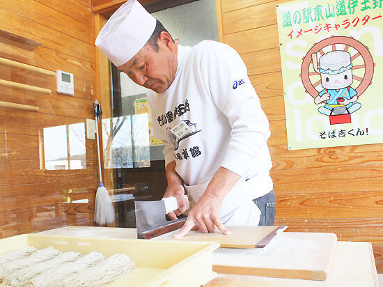お食事処「水車館」のすぐ隣では、そば打ち名人を先生に迎えた、そば打ち体験も可能。