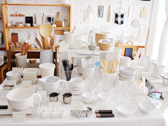 キッチン小物を中心に、白い陶器や木の雑貨、肌にやさしい服飾類などが並ぶ店内。やさしい香りに身をゆだねて、時間を忘れて眺めちゃいますよ☆海外の物から、作家さんの手作りの物まで、すべて店長の伊澤さんのチョイス。シンプルナチュラルなセンスが心地いい♪