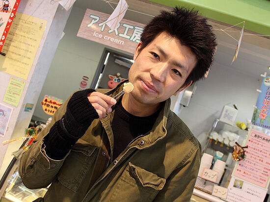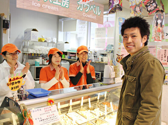 男にもあるんです別腹!こってりラーメン後のデザートは、酪農家さんが経営する「アイス工房 カウベル」の濃厚ジェラートをいただきます♪新鮮なミルクを使い、お店で手づくり。濃厚だけど後味サッパリで、食後にもピッタリです!