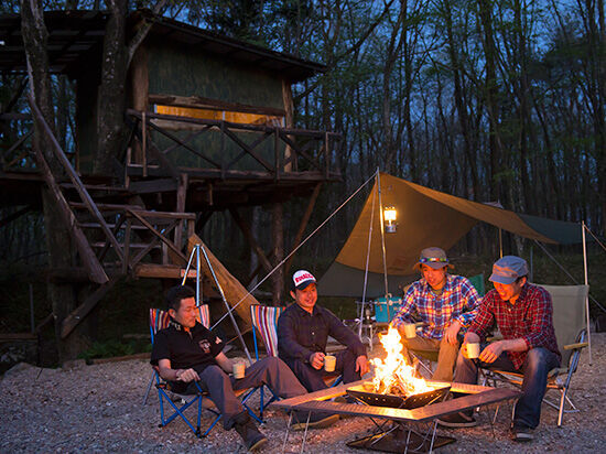 夜は、空一面に広がる満天の星空が眺めて天体観察。自然とともに1日を過ごす贅沢な時間を過ごせます。広いスペースなので、タープを張って食事を作ったり、持ってきたキャンプ道具を囲んで会話を楽しんだりと、長い夜も仲間と一緒だとあっという間。