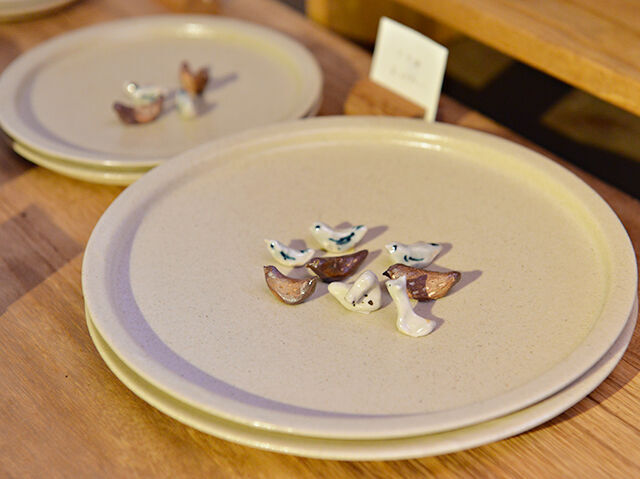 益子の小道を進むと現れるカフェ。マクロビオティック料理が食べられる「食堂」と約11人の作家たちの作品が並ぶ「商店」、2つの異なる空間を併設しています。ゆっくりと時が流れるようなひとときに、癒されること間違いなし!