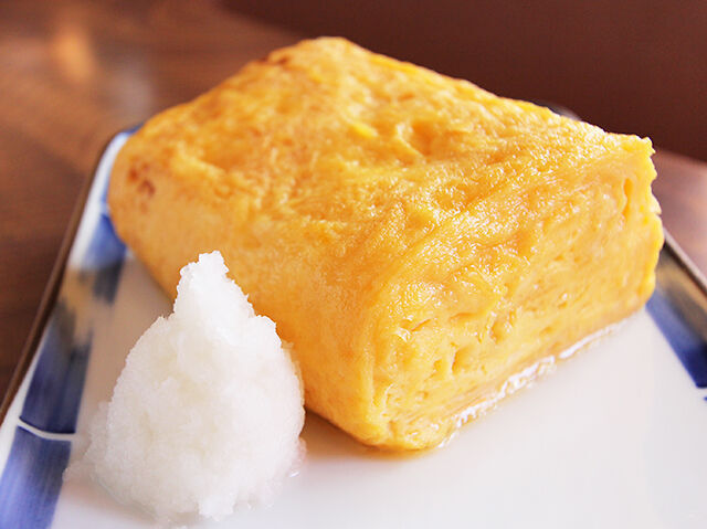 100年以上続くお店の名物★こだわり玉子と上品なお出汁がたっぷりの、ぶ厚いふわふわ玉子焼で贅沢サンドのできあがりっ!