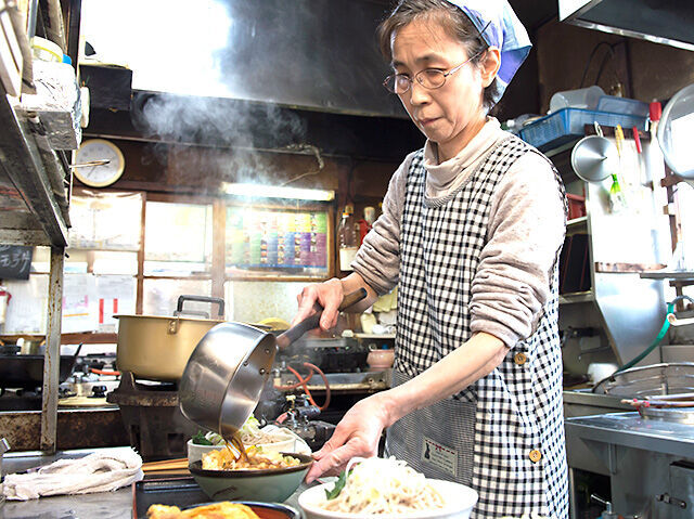 名物「ひたし天そば」が食べられるのは、創業40年近くという老舗のお蕎麦屋さん。冷たいお蕎麦は、大きなかき揚げがのった温かい汁にひたしながらいただきます。お蕎麦は、もちろんこだわりの手打ち。シコシコの歯触りが心地いい♪