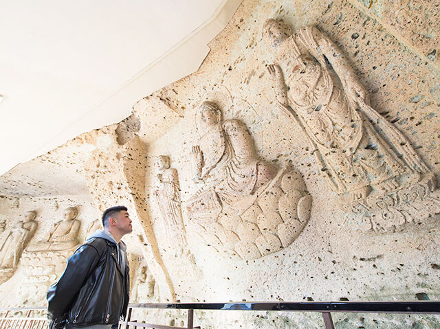 平安時代に彫られたとされる千手観音は、国指定 特別史跡・重要文化財・名勝の貴重な石仏。古くから「大谷観音」と呼ばれ、千の手と千の目で人々を見守っています。