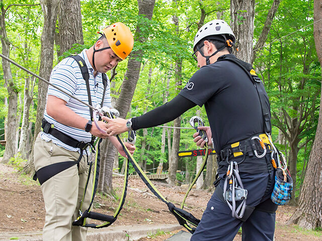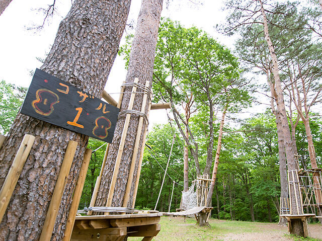 那須の森林を活かして作られた、全12コース95エレメント(アクティビティ)。大自然の中で、大人も子どもも夢中になって遊べます。