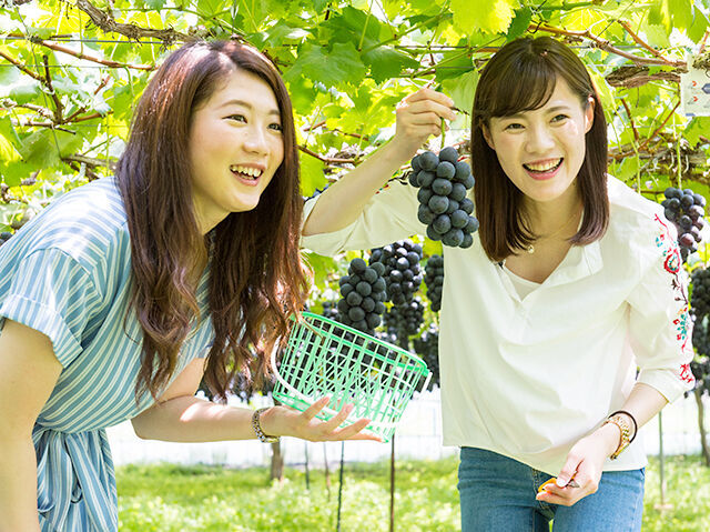 収穫時期の異なる25種類ものぶどうを育てているので、どんなぶどうに出会えるのかも、お楽しみのひとつ!弾けそうな実を一粒ほおばると、みずみずしい香りと甘みが口いっぱいに広がります。