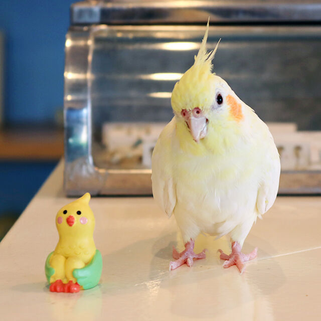 オカメインコならではの愛らしさと、人懐っこさが、お客さんの心を一気にわしづかみ!数年前に迷子になったことも…(笑)。愛称はポコちゃん。