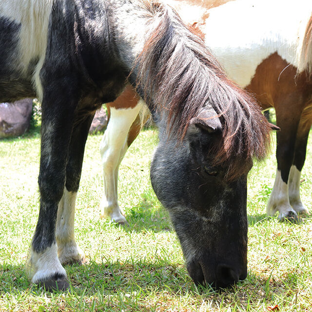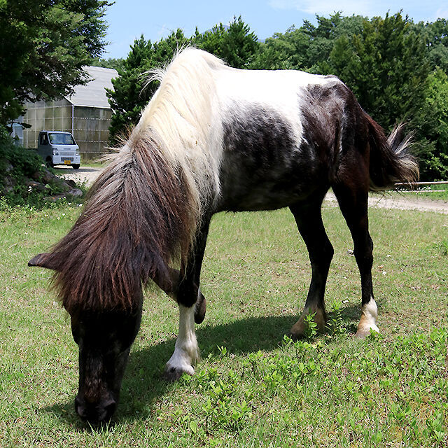 23歳になる、血統書付きのシェットランドポニー。人間なら90歳くらいのおばあちゃん。広々とした敷地で、毎日の~んびりと暮らしている。