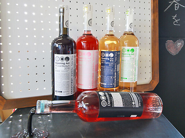 「Opening Act Delaware 2018です。勝沼産のデラウェアを使っていて、トロピカルでジューシー!ほんのり甘いので飲みやすいですよ♪ネオングリーンのラベルが目印です。」